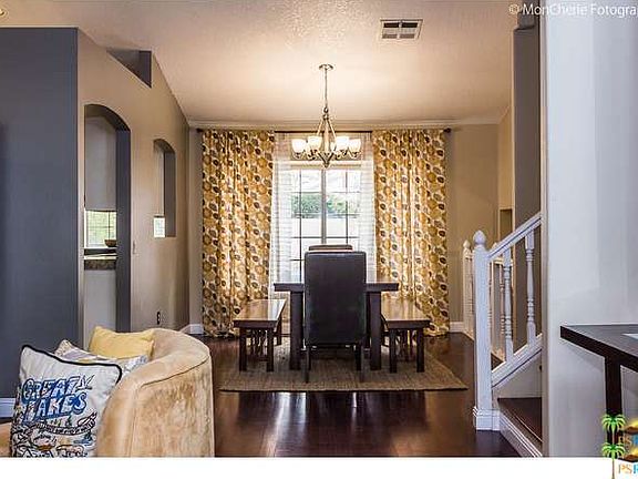 This four bedroom home offers a terrific floor plan in the Panorama neighborhood. The living room is on the main floor and welcomes you with vaulted ceilings and fireplace. The dining room offers an easy flow from living to kitchen for communal gatherings. The spacious kitchen has plenty of cabinets for storage, a gas stove and a bright breakfast area with a door to the backyard. Downstairs is a cozy den with a slider to the backyard plus a solo bedroom with private bathroom. The third level offers two side-by-side bedrooms that share a full bathroom. The master bedroom is large enough to accommodate oversize furniture plus a sitting area. There is a balcony off the master overlooking the pool so you can keep an eye on everyone in the back yard. The master bathroom offers dual sinks, a shower and soaking tub for relaxing evenings after work. Play games of catch and spend hours swimming and sunning in block enclosed back yard. Double garage to park both cars.