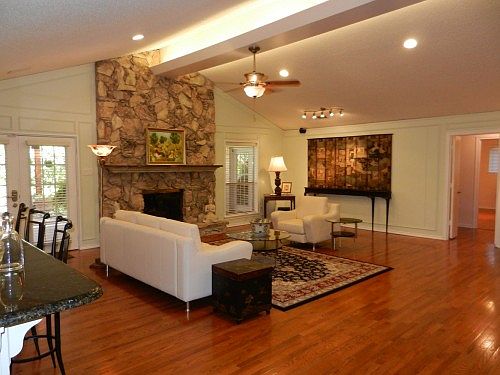 Complete info: http://6833huntersridge.PruTXhomes.com - This beautifully updated one story home is the entertainers dream come true. Expansive great room is graced with soaring stone fireplace, rich wood floors, cathedral style ceiling and an impressive fourteen foot granite top walk in wet bar. This stunning granite bar is open to the great room and easily accessible to the back yard. If you enjoy outdoor entertaining, then you will surely enjoy this lushly landscaped back yard. Back yard displays a large covered patio and arbor, plus an elaborate water feature which sets the ambiance for a tranquil experience. Light and bright kitchen hosts granite counters, tile floors and an abundance of cabinets, plus a built in hutch located in the breakfast area. The formal areas are enhanced with rich hard wood floors that extend into all the main living areas. The formal living room boasts French doors, making this room very versatile. Additional options for the formal living room are an ideal study, another casual TV room or even a music room. Very desirable split floor plan provides a totally private area for your guests or a great mother in law or nanny suite. Master suite is spacious and graced with French door access to the lushly landscaped backyard and patio. Updated master bath exhibits his and her separate closets and granite vanities, jetted tub and separate shower. You will also find two additional bedrooms with a large Jack and Jill bath located between them. Incredible home in a fantastic location. Additional features Culligan water softener system, motion detector, radiant barrier and extra insulation. CALL or TEXT Margaret at 972.814.4150 for more information or to see this home in person. VIEW MORE HOMES AT http //www.DallasGolfHomes.com