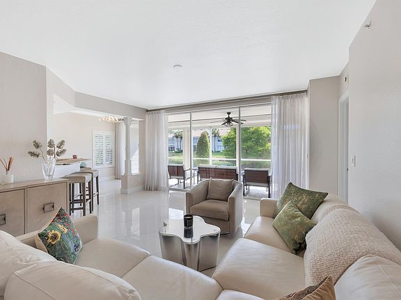 UNFURNISHED ANNUAL RENTAL. Tucked within a lush, private setting in North Naples, this lakefront community offers an ideal place to call home. This bright and airy unfurnished 3 bedroom, 2 bathroom carriage home is styled with neutral tones and elegant tile flooring throughout. The living room features a wall of windows that opens seamlessly to a spacious screened lanai, perfect for enjoying indoor-outdoor living. The kitchen is beautifully appointed with sleek countertops, stainless steel appliances, a generous pantry, and a counter-height breakfast bar. A separate dining area, highlighted by a stylish light fixture, creates an inviting space for meals and entertaining. The primary suite is a true retreat with plantation shutters, ceiling fan, and an expansive walk-in closet. The spa-like bathroom offers a soaking tub, walk-in shower, and dual vanities for comfort and convenience. Just outside is your lanai, where serene lake views and evening sunsets provide the perfect backdrop for relaxation. Additional features include a two-car garage and access to the exceptional amenities of Calusa Bay South. Residents enjoy a social room, two swimming pools, hot tub, library, two Har-Tru clay tennis courts, fitness center, fishing pier, community BBQ areas, active social calendar, a two-mile walking and nature trail, and a children's playground. Ideally located just minutes from Waterside Shops, Artis Naples, downtown, and Vanderbilt Beach, this home offers both tranquility and convenience. Live exceptionally in Calusa Bay!