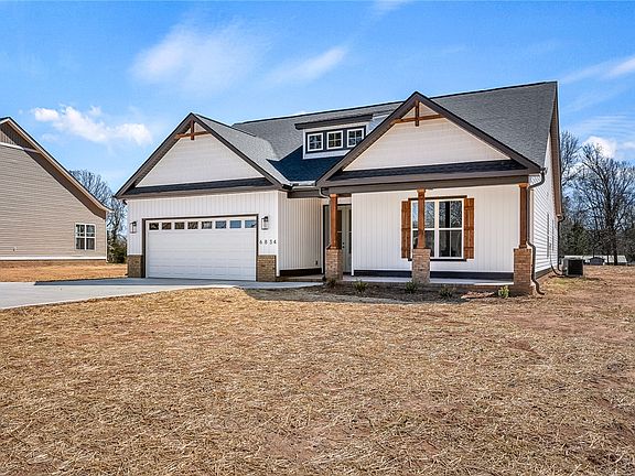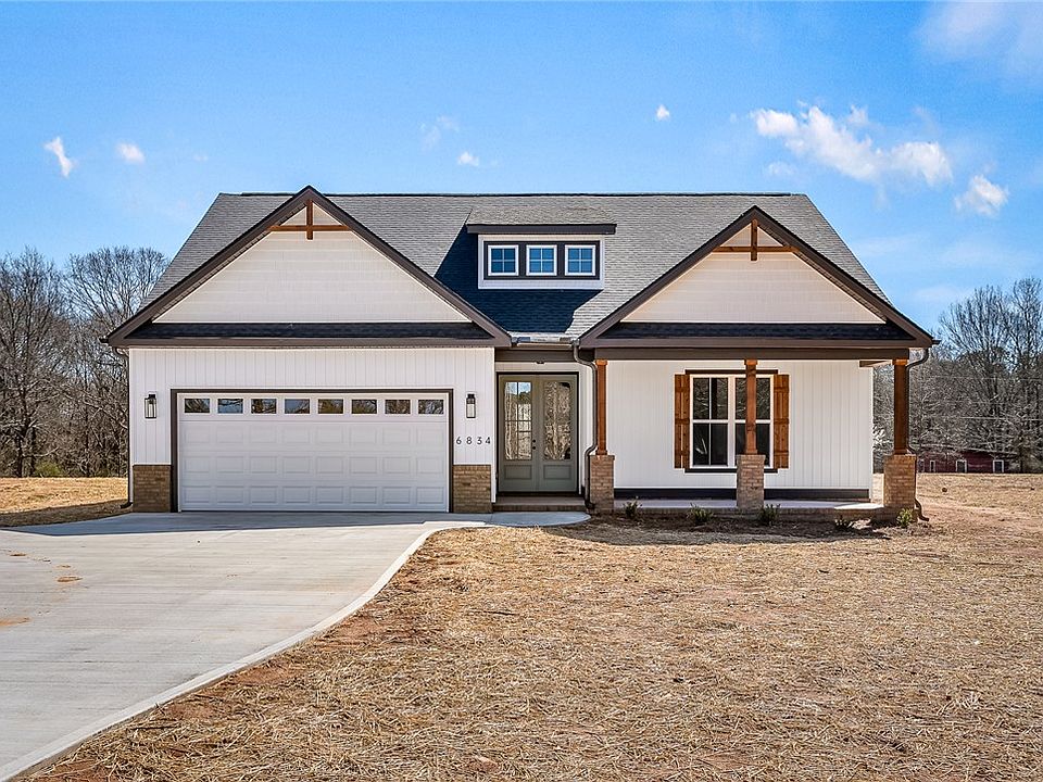 pour into the home. From the living room, you’ll have access to the covered back porch - a “must” for a southern home! With this home sitting on nearly half an acre, you’ll appreciate the space your backyard view provides. All bedrooms together and privately located away from the hustle and bustle of the rest of the home. The primary bedroom is large and features an en suite with two walk-in closets, linen closet, double 36” high vanity, private water closet and walk-in closet. The two bedrooms share a full bathroom and the smartly located laundry room is nearby, making it easy to service the bedrooms. Another “perk” to this home is a garage that’s larger than most newly built homes! The convenient location is halfway to Anderson and Greenville as well as close to 85! This home is a must see!