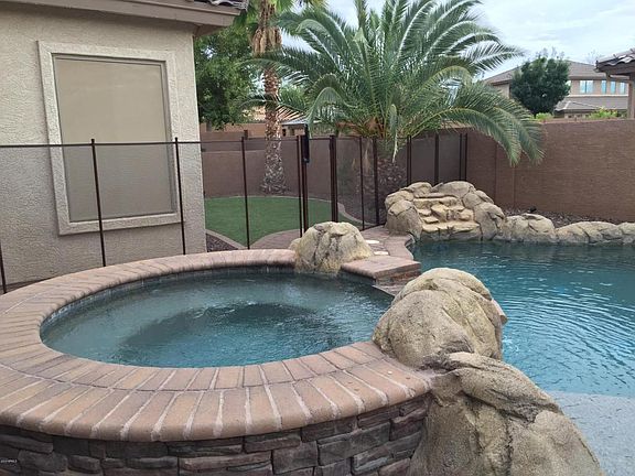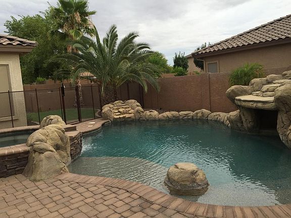Gorgeous single level 5 bedroom, 2 1/2 bath plus complete theater located in Seville Golf & Country Club. Walking distance to A+ rated Riggs Elementary. Clubhouse has pools, sand volleyball, full fitness gym. Theater includes projector, screen, touch panel remote, star filled ceiling, speakers,amplified tuner, blu ray dvd and reclining seating for 6. House offers plenty of storage. Recent remodels throughout. This home offers a spacious floorplan with a great room. Gourmet kitchen offers custom island,farmhouse sink, stainless steel appliances, microwave drawer, beautiful granite and oversized island with plenty of storage. Stainless steel fridge included. Reverse osmosis and water softener. Backyard is paradise!salt water heated pool & spa with 2 waterfalls and grotto. Built in BBQ,