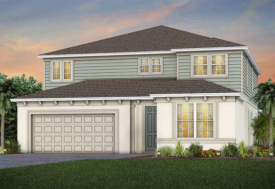 Under Construction. EverBe is a new master planned community where convenience and connections combine to create a new standard for home. Located in Orlando with quick access to 417 & 528, this lifestyle community will offer miles of pathways & trails, wi-fi-enabled green spaces, unique outdoor recreation areas, a fitness center, a clubhouse complex with resort pool, 2G internet, and a waterfront amenity and town center. Get excited for EverBe - everything home should ever be! Step into the Scarlett by Pulte Homes, where elegance and modern convenience come together in perfect harmony. This stunning 5-bedroom, 3.5-bathroom, 3- Tandem Car Garage residence offers a seamless blend of sophistication and comfort, with every detail thoughtfully designed to elevate your living experience. The open-concept layout creates a spacious and airy environment, enhanced by an abundance of natural light and luxurious finishes. On the first floor, discover an en suite bedroom with attached bathroom, featuring a glass enclosed shower, linen closet, exquisite quartz countertops, and a walk-in closet, providing a private and inviting retreat for guests. As you continue into the home, an enclosed flex room, located next to the gathering room, is the perfect spot for a home office or hobby room. The heart of this home is the gourmet kitchen; Dana White cabinetry beautifully complements the striking Lagoon Quartz countertops and decorative backsplash. Soft-close drawers, easy-access cabinets, upgraded sink and faucet, and Whirlpool built-in stainless-steel appliances, including a refrigerator combine to create a chef-inspired space designed for both form and function. The kitchen seamlessly flows into the café and gathering room, with a covered lanai, enhancing the indoor-outdoor living experience. For added convenience and privacy, you’ll find a powder room for guests located on the first floor. Upstairs, the tranquil owner’s suite serves as a private sanctuary, featuring a spacious walk-in closet and a spa-like en suite bathroom with dual vanity sinks. The loft area offers an ideal space for relaxation, whether for a quiet evening or a movie night. The second floor also includes three additional bedrooms, a bathroom, and a conveniently located laundry room, making daily living effortlessly easy. The laundry room itself offers both style and convenience with Whirlpool washer and dryer adding a touch of elegance to everyday tasks. This home is crafted with high-end touches, such as luxury vinyl plank flooring in the first floor main living areas, bathrooms and laundry room, and plush, stain-resistant Shaw carpet in the bedrooms and loft. From the brushed nickel hardware finishes and 8' interior doors to the Wrought Iron Balusters with Oak Handrail at the staircase no detail is overlooked. 2” faux wood blinds add both style and ease to daily living. With its exceptional design, sophisticated finishes, and smart features, this Scarlett home is the epitome of both comfort and luxury—perfectly tailored to fit your lifestyle.