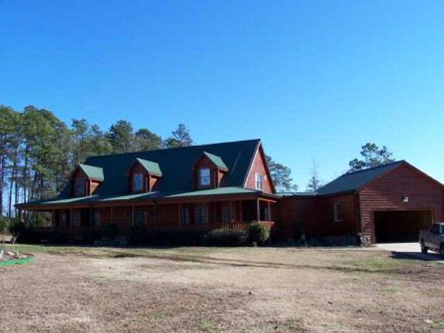 Log cabin on 13 acres just off Hwy. 581 in Bailey. Basement was previously finished for in-law quarters, not included in square footage.