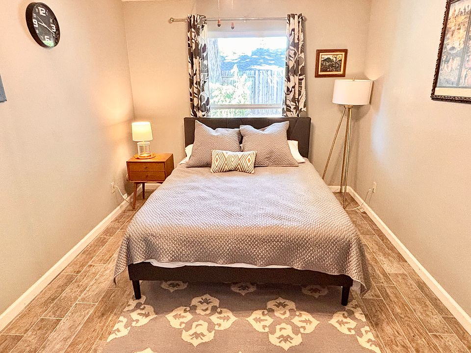 Room for rent with your own bathroom and kitchen/living room access in the highly desirable "Pocket" neighborhood of Sacramnto. The home is in a cul-de-sac and has a front yard and backyard as well as plenty of parking. Newer open kitchen with quartz counters upgraded cabinets and stainless steel appliances. Bedroom can be furnished or unfurnished. Flexible on time frame can be 3 months to 1 year.