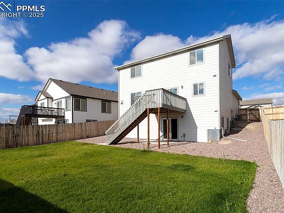 Come see this beautiful, better then new, impeccably maintained, 4 bedroom, 3 1/2 bath Family Home in the desirable Lorson Ranch neighborhood! You've got to see it to believe it! This 4 year old Tralon Homes (formerly Saint Aubyn Homes) built home has ALL of the upgrades you could possibly want & MORE! This home is solid...with 2 x 6 construction, Hardi-Plank fiber cement siding, exterior stone accents, vinyl low-E windows & Owens-Corning shingles. For your comfort - the home has central air & a whole house humidifier. The designer, eat-in kitchen features granite countertops, tons of storage - including a spacious, separate pantry, stainless steel, Whirlpool appliances, a lazy Susan corner cabinet & a wonderful center island with breakfast bar. Take the chill off of those cold, Colorado evenings with the cozy, gas fireplace in the main level great room with stone accents. The home features luxury, vinyl, flooring on the main level with carpeting in the bedrooms & basement level family room, upgraded lighting in main rooms & lever door handles in brushed nickel. You have a 50 gallon gas hot water heater, a digital programmable thermostat, main level laundry room, ceiling fans with lights, neutral window coverings & bullnose corners. Gather with family & friends on the 10 x 10 patio off of the kitchen/great room or the other 10 x10 patio outside of the walk out basement. You can enjoy a wonderfully maintained yard with easy care landscaping & front & rear sprinkler system with timer. There are LOTS more designer features that you have got to see for yourself in this stunning home! Easy access to shopping, dining, entertainment, the Colorado Springs Airport & MORE! Schedule your showing today & Welcome Home!