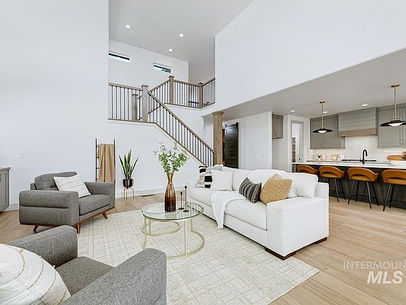Step into this gorgeous Two-story Houston home just steps away from exclusive Boise River Access. Past the wide entry, you’ll find a bright, open layout centered around the vaulted great room with a 42" platform fireplace and expansive windows. The chef’s kitchen features a large island, walk-in pantry, and connects to an expanded dining area that opens to the covered patio. The main-level primary suite is tucked away for privacy and offers a freestanding soaking tub, tiled shower, and access to the laundry room. Completing this home is a private office, two secondary bedrooms, and a split three car garage with a boat bay. Now open, the River Park Estates Clubhouse offers endless opportunities for activity and relaxation. Enjoy pickleball, swimming, lounge areas, and more, all presented in a beautiful modern aesthetic. Home is ready now.