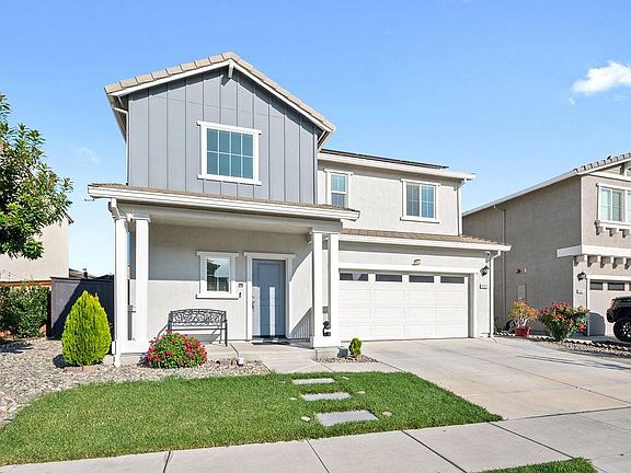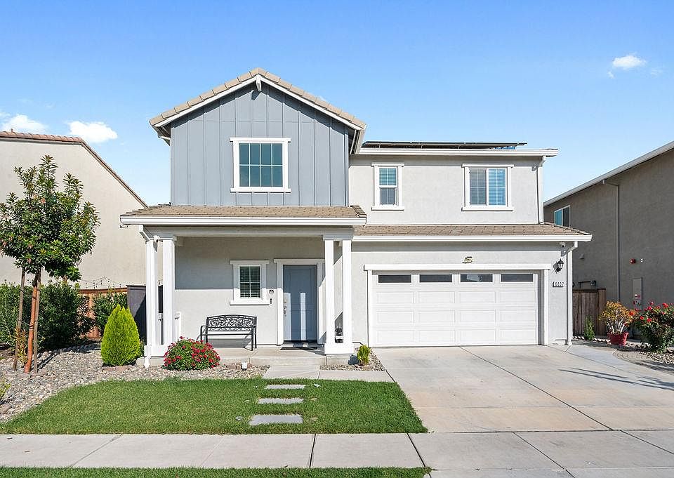 Welcome Home to this charming and modern 5-bedroom, 3-bath home in Stockton's desirable 95219 community. Built in 2022, this bright and open layout features a stylish kitchen with stainless steel appliances, upgraded cabinetry, and a large island that flows into the living and dining areas perfect for everyday living and entertaining. A downstairs bedroom and full bath add convenience for guests or multigenerational needs. Enjoy the benefits of OWNED solar and a fully landscaped backyard, thoughtfully designed for relaxation and low-maintenance outdoor enjoyment. Located near parks, shopping, and commuter access, this home blends warmth, efficiency, and modern comfort.