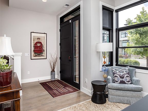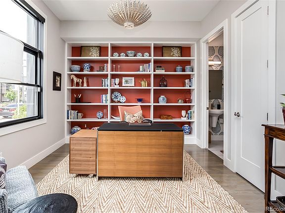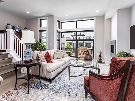 Welcome to this remarkable Boulevard One townhome, centrally located in Lowry. One of eight units by East West Partners, this home presents as a model home with custom built-in shelving in the office, gorgeous newer designer wall paper, newer paint in several rooms and updated light fixtures above the kitchen island. You’ll feel cozy and right at home with abundant natural light and high ceilings throughout. The chef’s kitchen with oversized center island features stainless steel appliances, gas cooktop, convection oven, shaker cabinets, subway tile, brushed nickel hardware, and stone countertops. The great room also features built-in bookshelves, bench seating, a gas fireplace, and a wall of south-facing windows. Upstairs, the primary suite offers a walk-in closet, a luxurious 5-piece bath with marble flooring and a soaking tub. This level also includes a second ensuite bedroom with a full bath and a conveniently located laundry area. The home is adorned with white oak hardwood floors throughout and carpeting on the bedroom level. The unfinished lower level, with rough-in plumbing and a deep egress window well, provides additional space that can be customized to the new owner’s preference or used as-is for ample storage. Outdoor living is enhanced by the front porch, the balcony off the kitchen, and a third-level south facing balcony overlooking the Boulevard and a peek view of the mountains. This home is perfectly situated with nearby amenities including Target, Clark’s Market, Torchy’s Tacos, Safeway, Lowry Town Center, and plenty of parks and green spaces nearby. Welcome home!