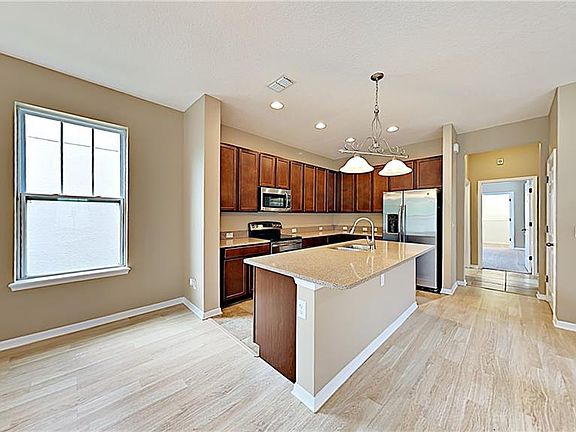 Enjoy living in this 4 bedroom, 2 1/2 bathroom home located in Harmony community. Open floor plan with new interior paint, and newly carpeted bedrooms. Tile kitchen features stainless steel appliances and center prep island with breakfast bar. Downstairs master in the rear of the home, includes en-suite with a garden tub, separate shower, and dual vanity sinks. Rear entry attached 2 car garage. Upstairs you will find the guest bedrooms and bathroom. Covered patio for entertaining overlooks small private fenced side yard. Stop in and take a look today!