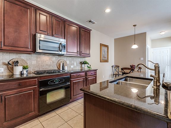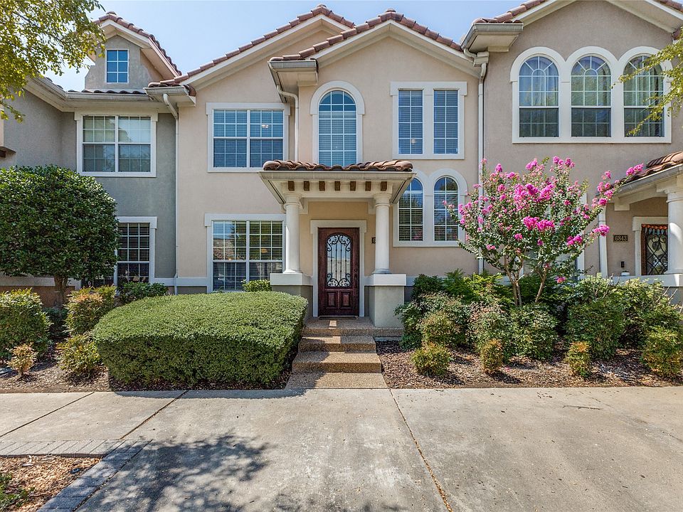 Situated in the heart of the vibrant La Villita community, this Mediterranean-style townhome blends the convenience of low-maintenance living with a prime location. As you enter the front door you are greeted by tall 2-story ceilings and tile flooring that flows throughout the 1st floor which makes for effortless care and cleaning while standing up to daily wear. Complete with granite counters, a large breakfast bar and a gas cooktop, the open kitchen overlooks the family room that is right next to a convenient half bathroom for guests. Off of the eat-in kitchen area you will find a private patio, the perfect spot for morning coffee. The primary bedroom has an en-suite bathroom with dual sinks, garden tub, separate shower and walk-in closet. A second bedroom with full bath provides flexibility for guests, a home office, or family. Enjoy peace of mind for your kids only having a few steps to walk to the highly rated La Villita Elementary. Residents enjoy community perks such as a private lake, parks and playgrounds plus exterior landscaping maintained by the HOA. Lake Carolyn, Lago Claire, Campion Trail are all nearby for those who enjoy the outdoors. This unbeatable and central location puts you near DFW Airport, Toyota Music Factory, major highways and endless options for dining, shopping and entertainment.