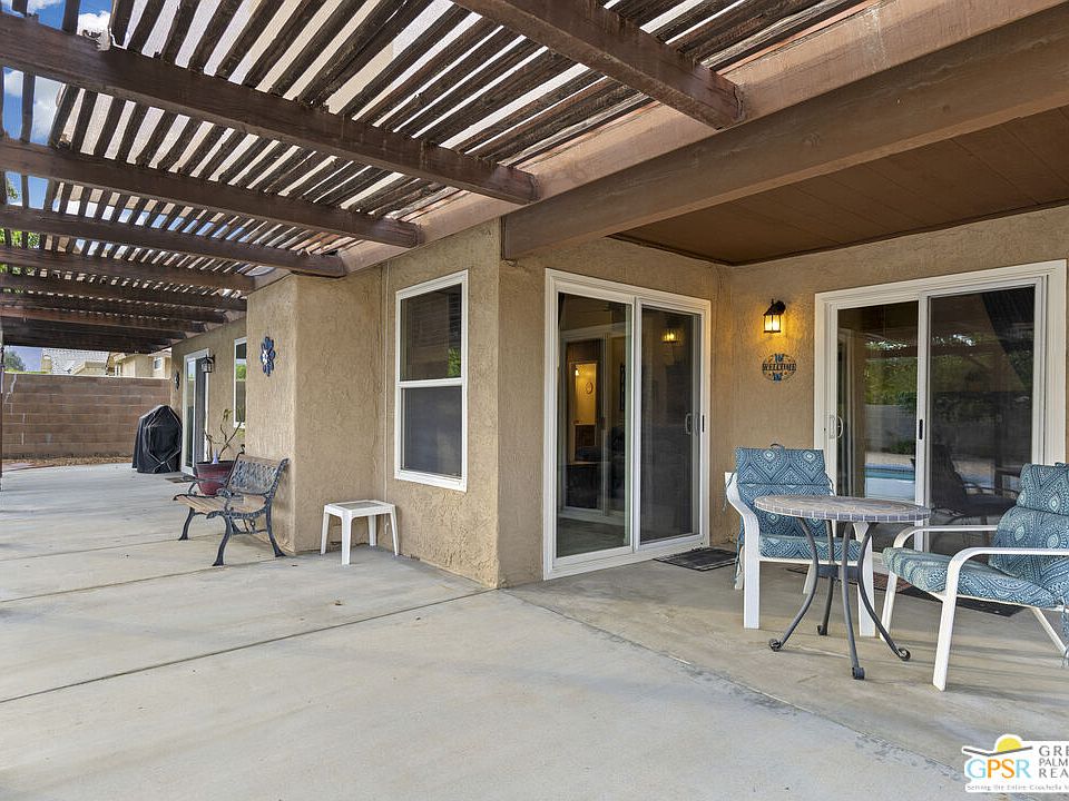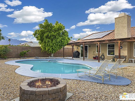 Large corner lot pool home located in an excellent school district!!! The home has some updates such as a new roof membrane (2024), water heater (2024), pool heater and filter (2024), interior paint (2024), Oven (2024). It features an exterior block wall around the backyard, den, skylight, vaulted ceilings, solar panels, desert landscaping, citrus grove, storage shed, outdoor fire pit and rain gutters. A park like setting welcomes you from the curb through the large front yard. Step inside the front door and take in the high ceilings, gas fire place and windows and sliding glass door that showcase the gorgeous backyard and pool views. Actually the Leisure area faces south and the entire south side of the house (Den, Living room and primary bedroom) have many windows and doors providing the optimum lifestyle of indoor/ outdoor living. Step out under the pergola, past the gas fire pit and storage shed and you will find an array of citrus trees including lemons, limes, mangos, peaches, grapefruit, oranges and pomegranates. Take your selection back into your open concept kitchen and dining room which features some wood shutters on a large bay window. The owner removed a wall many years ago that used to separate the kitchen and dining room. Step into the hallway and into the large primary bedroom which features a walk in closet and bathroom with water closet that contains a shower and commode with closing door. Take a walk down the long hallway where you will find 2 other bedrooms, a full bathroom and a powder room. All of the 3 bedrooms have ceiling fans along with the dining room. At the end of the hall is a laundry room and garage entrance. The garage features a large window above the remote control door. There is also a door that leads from the garage to the side yard which has a nice paved walked way with gate! Most of the ceilings are smooth, there are some custom closets and a metal security door at the entrance! Come see this outstanding property and imagine spending early mornings in the breakfast room/ den drinking your favorite coffee! Buyer to verify all information