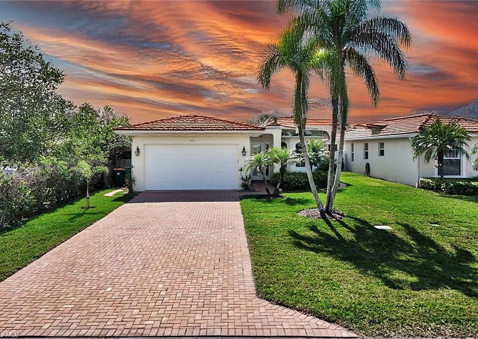 Bright and airy 3-bedroom plus den home with a heated pool and spa! This 1,702 sq. ft. coastal-style retreat features an open-concept layout, vaulted ceilings, and large windows that fill the home with natural light. The open kitchen—complete with a breakfast bar and new appliances—flows seamlessly into the living and dining areas, making entertaining effortless. Sliding glass doors lead to a covered, screened-in lanai and a sunny southern-exposure pool and spa, perfect for year-round outdoor living. The spacious main bedroom also opens to the lanai, while two additional bedrooms share a well-appointed guest bath. A versatile den is ideal for a home office or flex space. The utility room offers a washer, dryer, and extra storage. Enjoy peace of mind with Flood Zone X elevation, storm shutters, and brand-new community water lines. Furniture is negotiable for those seeking a turnkey option. Lovingly maintained by the same owners for 15 years. Located just minutes from Mercato’s shopping, dining, and Whole Foods, and a short bike ride to Vanderbilt Beach and Delnor-Wiggins Pass State Park. Close to the Ritz-Carlton and La Playa Beach & Golf Resort for a true luxury-living experience. This beautifully cared-for home offers the perfect blend of relaxation, convenience, and quintessential Naples living.