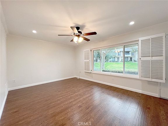 Beautifully maintained home in the Corsican Villa Development ~ Nice interior location situated by a sprawling greenbelt ~ Lots of upgrades in this home including hard surface flooring downstairs, new interior paint, recessed lighting, ceiling fans, dual paned windows, remodeled kitchen and master bathroom, upgraded A/C unit, crown molding and baseboards ~ Spacious living room with large picture window to enjoy the view of the grounds ~ Remodeled kitchen with granite counters, recessed lighting, nice cabinetry and stainless steel sink ~ Dining area with sliding doors to patio ~ Convenient interior laundry with extra storage ~ Master bedroom with view deck and remodeled bathroom with walk in shower ~ 2 additional bedrooms are ample in size and share a hall bathroom ~ Private patio opens to 2 car garage ~ Lots of greenbelts and mature trees in this development ~ Enjoy 2 pools and RV parking ~ Corsican Villas is conveniently located near shopping, restaurants and schools ~