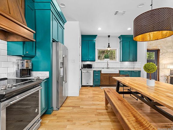 Nestled across the road from the iconic Garner State Park, this remarkable property boasts 11.2 acres of scenic beauty. Built in 2017, the impeccably crafted main residence comes *FULLY FURNISHED* and equipped as a profitable STR offering 4 bedrooms, 2 full baths, and 2 half baths, ensuring ample space for comfortable living. Just minutes from the free-flowing Frio River and a short 2 1/2-mile drive to Garner State Park's main entrance, this location promises endless outdoor adventures. Crafted with meticulous attention to detail, the main home features a striking 100% stone exterior, while the garage building showcases a charming 100% cedar exterior. Both structures boast 2 x 6 walls, spray foam insulation in the ceilings, and 24-gauge standing seam metal roofs, ensuring durability and energy efficiency. Inside, the home exudes elegance with solid red oak flooring throughout and tile flooring in the bathrooms. High-end faucets adorn all sinks and showers, while solid marble countertops grace the bathrooms and kitchen. The kitchen is equipped with stainless steel appliances and custom-built cabinets crafted from solid wood. Accommodating gatherings of any size, the residence comfortably sleeps 17 with 5 queen beds and 7 twin beds, all featuring new mattresses. For added convenience, an oversized stainless-steel water heater and water softener are installed. Unwind after a day of exploration with the outdoor shower, or retreat to the workout room above the garage for a rejuvenating exercise session. An additional sleeping area offers flexibility for guests or family members. Water is abundant with a well reported at 100 gallons per minute, drawing from an 890- foot deep well into the Trinity Aquifer. Covered parking is provided under the 12 x 40 carport, ideal for RVs or trailers. This home is a true gem!