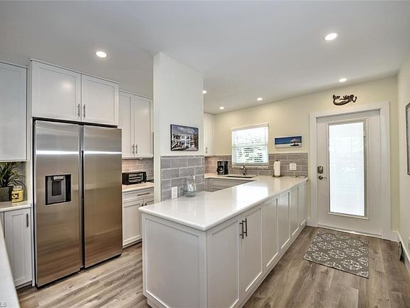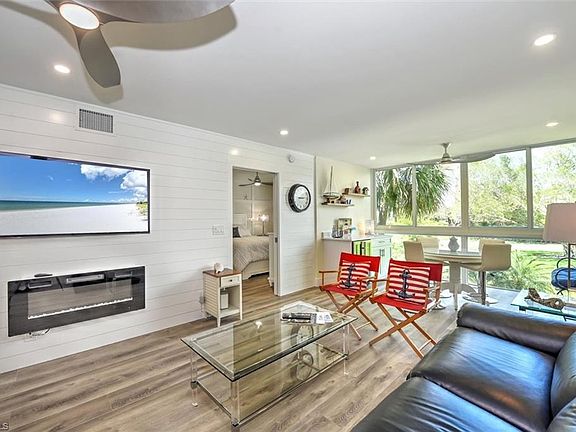 Available Jan 1, 2026 Stunning NEW Jasmine Cottage decorated in contemporary Cottage Style with a BEACH VIBE! 2 bedroom 2 bath tastefully furnished and updated to the highest standards. Navy blue leather sofa / recliners. Custom finishes throughout including quartz countertops, solid wood cabinetry, stainless appliances, accent wall in Master Bedroom, comfortable bar area with high-top table and leather chairs, beverage cooler and floor to ceiling hurricane resistance windows. Washer and dryer in the unit and a fireplace too! Located in the heart of the Historic District of Olde Naples. Nearby to Crayton Cove, City Docks, Cambier Park, Third Street and Fifth Avenue shops and restaurants and Naples Beach and Pier. This is a beautiful place to enjoy the Olde Naples lifestyle