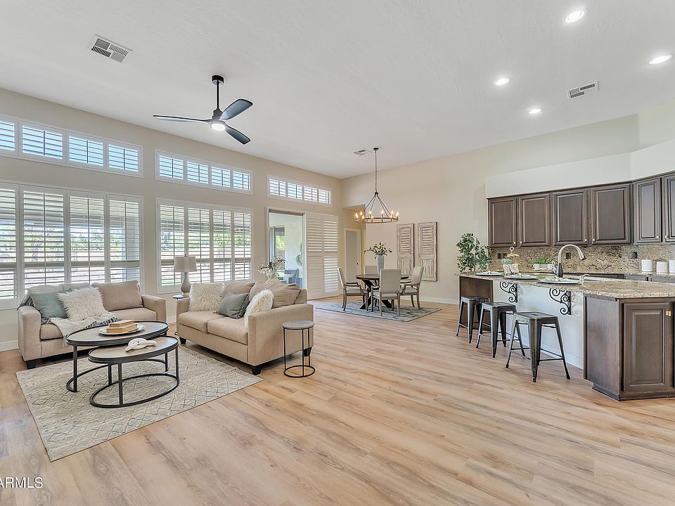 Back on Market! Imagine waking up in a beautifully remodeled home nestled in a serene family-friendly neighborhood. The spacious floor plan is designed for both relaxation and entertainment, with soaring ceilings that give the entire space a grand yet welcoming feel. The open great room flows effortlessly, making it ideal for gatherings or quiet nights in with the family.The true treasure of this property lies in the backyard. It's your own private escape, complete with a sprawling lawn perfect for play or relaxation, and a sparkling pool and hot tub for endless fun. There's even a built-in fire pit—ideal for relaxing with loved ones or hosting gatherings under the stars. And with no neighbors behind, you'll enjoy peace and quiet while savoring the privacy of your outdoor space Whether you're hosting family get-togethers or enjoying a quiet evening around the fire pit, this home offers the perfect blend of comfort, style, and seclusion.
