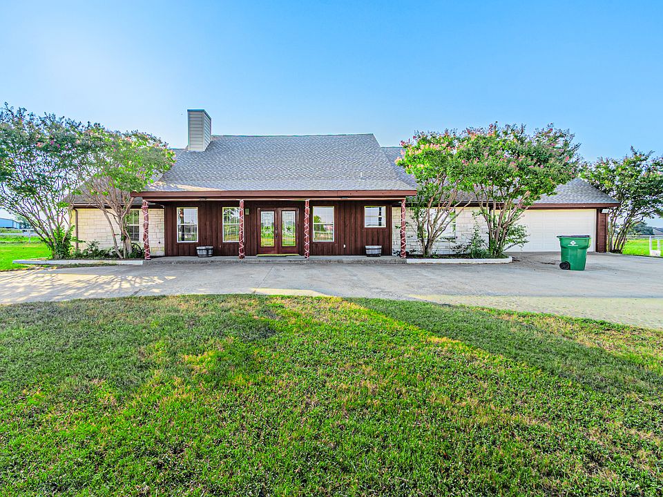 Enjoy the perfect mix of space, privacy, and convenience in this beautifully remodeled home between Lake Ray Roberts and Lake Lewisville. This beautifully designed residence offers an open floor plan with high ceilings, hardwood floors, and an abundance of natural light. The gourmet kitchen features granite countertops, stainless steel appliances, and a spacious island perfect for entertaining. The luxurious primary suite includes a bathroom with a tub, and a walk-in closet. Additional features include a family room with a fireplace. Step outside to a private backyard with a covered patio, ideal for outdoor dining and relaxation. Situated in a prime location with easy access to boating, fishing, and hiking at nearby lakes, this home provides the perfect blend of comfort and convenience. NOTE: DISCUSS WITH AGENT FOR EXTRA ACERAGE AND BARN FOR ADDITIONAL RENT PER MONTH