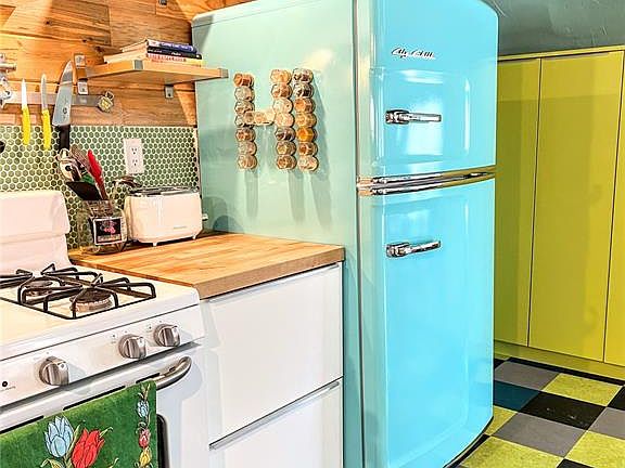 Pine treesSurrounding mountains and valleyBreathtaking viewsJuliet balconyRadiant floor heatFrench doorsTurquoise refrigerator