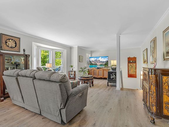 Gated Townhouse, Experience serene, single-level living in this rarely available upper corner end unit in the exclusive, gated Hyland Creek Village. This beautifully maintained home offers 2 bedrooms and 2 full bathrooms, with a potential to make another room. The interior features stunning German laminate floors throughout and a modern kitchen with quartz countertops, high end cabinetry, and high stainless steel appliances. The spacious living room, with its cozy gas fireplace, flows seamlessly into the dining area. A Separate family room for kids/guests. Recent updates are attached in the realtor documents. Enjoy the convenience of a quiet, tranquil setting while being just a short walk from shops, the library, and transit.