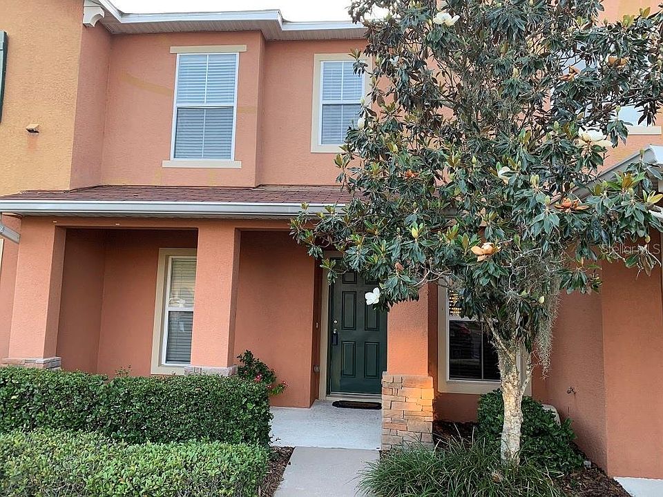 Cute townhome with a front porch to welcome you! This townhome has the kitchen at the front with a closet pantry and an opening above the sink so you can visit with family and friends. The dining space is open to the living area which has sliding glass doors leading to a patio and offering a view of the woods. Energy efficient windows minimize energy costs and outside noise. A powder room is located on the first floor too. Tucked under the staircase is a walk in storage area. Upstairs are two bedrooms, one at the front and one at the back. The bedrooms share a hall bath with tub and shower. Washer and dryer have their own room with shelving above for storage of laundry supplies. If you're looking for a great location you'll love this townhome! Just minutes to Winn Dixie, Super Target, Home Depot, I-75, Selmon Expressway, Westfield Mall & so much more. When you're looking for some down time you can enjoy being at the pretty community pool with brick paver deck or take a quick stroll down Hwy 301 to the Tiki Docks! This home has ample parking for you and your guests and is located across the street from the community mailboxes.