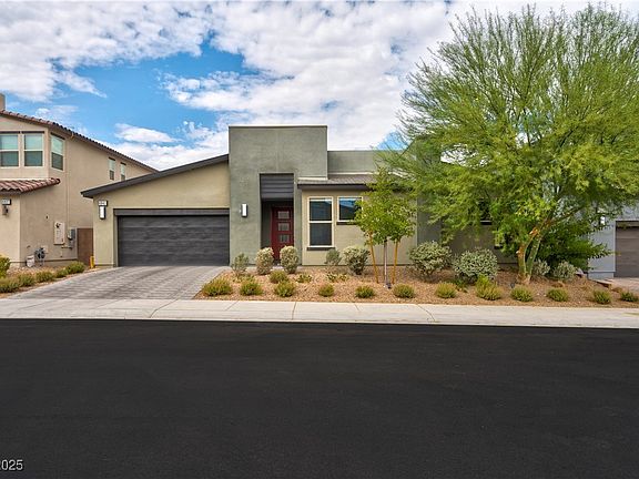 Welcome to this stunning 4-bed (1 is Den w/ Doors) 2.5-bath single-story home designed for modern living. Your future residence features an open-concept layout with a spacious great room that seamlessly connects to the gourmet kitchen. Here you’ll find stainless steel appliances, a gas cooktop with a sleek stainless-steel glass wall-mounted range hood, built-in oven, expansive island, and modern cabinetry—perfect for both everyday meals and entertaining. The luxurious primary suite offers a spa-like bathroom & generous walk-in closet, while the secondary bedrooms provide comfort & flexibility. Outside to you'll enjoy a large covered patio with recessed lighting, overlooking a low-maintenance backyard. Home has been upgraded w/ Smart Home Package at Panel. Located just 5 minutes from the 215 freeway & Aliante Casino/Hotel, this home also offers close proximity to parks, shopping, dining, & top-rated schools. Style, comfort, & convenience come together in this beautifully designed home!