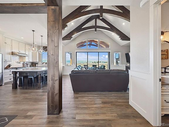 This modern farmhouse has a perfect layout for entertaining and everyday living. The open kitchen is equipped with two dishwashers, two refrigerators, and a pantry to die for. This is only outdone by the laundry room with double washer and dryer. The space is perfect for a large family. The great room has an 18' vaulted ceiling, inspiring mountain views and a large stone hearth with a wood burning fireplace to warm the entire home. The covered deck through the sliding doors from the master suite is a great place for morning coffee and to watch the sunrise. The outdoor fireplace under the covered deck looks out over the valley and 12 acres of open space. Sitting on the huge covered deck you see spectacular sunsets beyond the mountains. A great place to wind down a busy day.