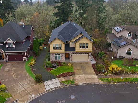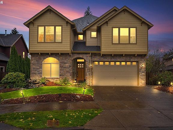 This beautiful home is the perfect place to create lasting memories. Featuring 4 spacious bedrooms upstairs, including a large primary suite with high ceilings, a cozy fireplace, and space for a reading nook, it offers plenty of room for relaxation. A Jack-and-Jill bathroom conveniently connects two bedrooms. The 3-car garage includes a unique third bay tucked behind the others, perfect for storing bikes, sports equipment, or creating a workshop for your projects. The open dining area, highlighted by a double-sided gas fireplace, is perfect for hosting gatherings. Springtime brings the vibrant gardens to life, with colorful roses, daffodils, tulips, peonies, and a fragrant lilac bush surrounding the home. The backyard features two custom Trex decks overlooking greenspace, providing a fantastic space for outdoor play, BBQs, and birdwatching. Hummingbirds are frequent visitors, adding charm to your outdoor retreat. Inside, the living room is bathed in natural light from large windows overlooking the backyard, creating a bright and inviting atmosphere. The front yard water feature, complete with a small waterfall and pond, is a favorite for neighbors and adds a soothing touch to the property. With a generously sized den and family room, this home offers a highly functional floor plan that meets all your needs. Plus, a new 50-year architectural roof ensures peace of mind for years to come. [Home Energy Score = 4. HES Report at https://rpt.greenbuildingregistry.com/hes/OR10234609]