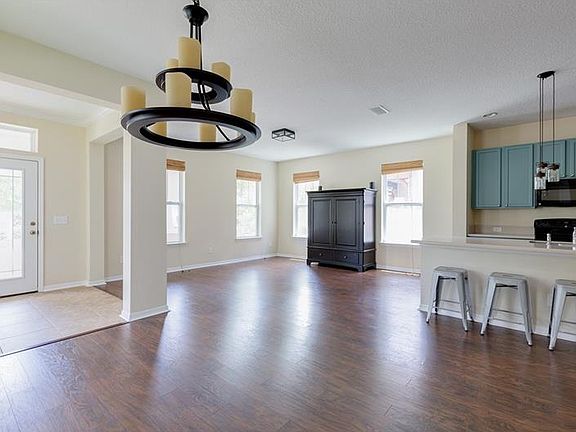 Come see this beautiful 4 bedroom 3.5 bath David Weekly home. 2nd floor has a private bedroom and bathroom for 2nd junior master. Laminate wood floors flows throughout the down stairs. Open kitchen has a large island to enjoy eating or gathering with your guests. New stainless steal refrigerator, new stainless steal range, new stainless steal dishwasher, and new stainless steal microwave. Washer and dryer do convey with the home. Master bedroom is downstairs and has a walk-in closet. The master bathroom has a separate shower, garden bath and dual sinks. Enter the upstairs into the large bonus/loft area which can be used as a media room, play room or work out area. 3 bedrooms upstairs with 2 full bathrooms. Buyer to verify all rooms measurements. Enjoy cooking out on your private patio. Located in the highly desirable Green Certified community of Harmony. 30 minutes to the beach or 30 minutes to Orlando International Airport, easy access to all. When you live here there will be many ame