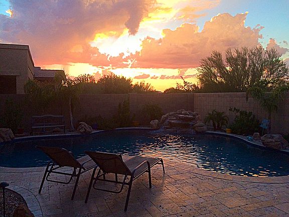 Beautiful oasis home in a private cul-de-sac! Surrounded by desert, with no neighbors in back or to the east. Spacious bedrooms with a loft, have mtn views, and one private bdrm downstairs, All baths have double sinks! Master has a balcony/exit to views of the scenic desert, miles of AZ majestic mountains and dazzling sunsets. Gourmet kitchen with s/s appliances, gas cooktop, wall oven, stone backsplash,and a butler''s pantry! The open family room is tiled with a cozy stone fireplace and built-ins!Large living room and formal dining forall the holiday and family events. Cascading upgraded staircase and soaringceiling makes this a grand house!New pebble sheen pool, w/tropical landscape, rock waterfall, travertine patio/decking. Outdoor delight! Tandem 3-c garage. Must see!!
