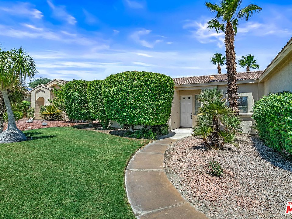 A touch of Tuscany in Cathedral City. This home located in La Pasada represents a great opportunity to purchase a home and tailor the property to your taste. Great room concept embraces the sun dappled pool area which overlooks the mountains in the distance. Private walled and gated rear yard area with beautiful lanai. Cook's kitchen with an optimal layout to craft meals. Private main suite occupies one wing of this home with generous closet and en suite featuring a soaking tub and separate shower. Guest rooms reside on the opposite side of the living area with a full bath. An original residence awaiting the new buyer's creativity and special touch. Some photo images are virtually staged.