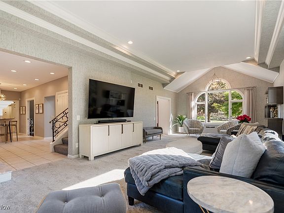 Welcome to this stunning brick colonial in the desirable Woods of Nobles Pond, offering timeless elegance and modern luxury in a prime location. This spacious home features five bedrooms and four full bathrooms, with nine-foot ceilings throughout, creating an open, airy flow. Step inside the two-story marble foyer that flows into the dining room and gourmet kitchen. The double-sided fireplace warms both the inviting great room and the kitchen, creating an ideal space for entertaining or relaxing. A split staircase leads to the impressive master suite with cathedral ceilings and a newly remodeled spa-like bathroom featuring a luxurious steam tile shower. The first-floor laundry adds convenience, and the flex room or fifth bedroom on the main level provides versatile options for guests or a home office. The finished lower level offers a large recreation area, abundant storage, and plumbing for an additional bath. Elegant Phillip Jeffries wallpaper enhances the home’s sophisticated character. Step outside to an expansive patio overlooking tranquil pond views, with the property extending to provide direct pond access. Enjoy neighborhood walking trails and a three-car garage for added convenience. Ideally located within walking distance to Nobles Pond Plaza, you’ll love easy access to shopping, dining, and the soon-to-open Olinda Restaurant. Experience luxury, comfort, and style in this exceptional Nobles Pond residence.