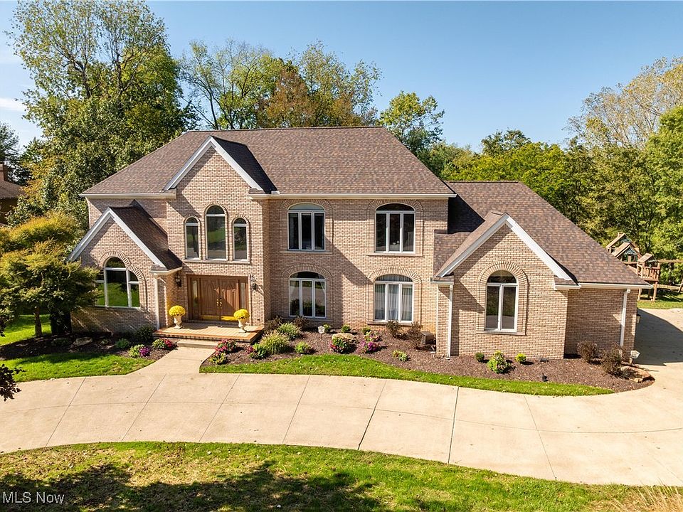 Double-sided fireplaceBrick colonialFive bedroomsTwo-story marble foyerFinished lower levelExpansive patioFirst-floor laundry
