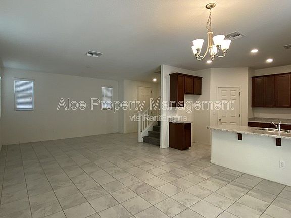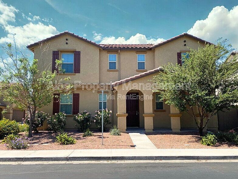 This 3-bedroom, 2.5-bath home offers 2,180 sq ft with functional spaces inside and out. The main floor includes a front office, open living room, and an eat-in kitchen with ample storage. Upstairs features a loft and all bedrooms, including a split primary suite with a private bath and walk-in closet. The backyard offers extended pavers and low-maintenance landscaping, while the HOA maintains the front yard. A community pool and park are directly across the street. Conveniently located near shopping, dining, and freeway access. Pets allowed.