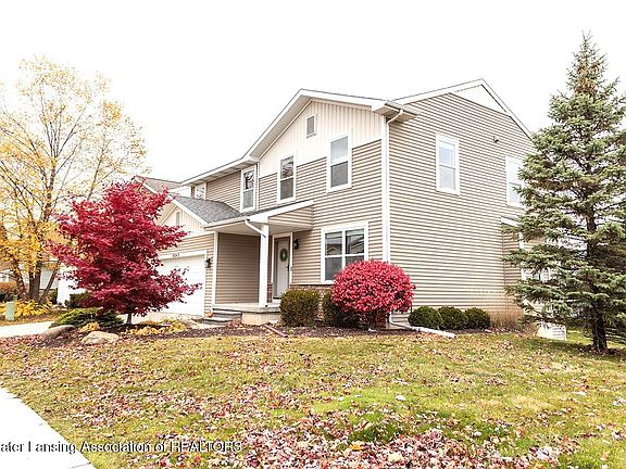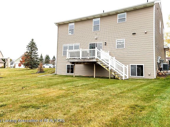 Built in 2009 & thoughtfully updated, this stunning two-story 3 bed 2.5 bath home blends modern style with comfort & functionality. The updated kitchen features beautiful white cabinetry, quartz counters, beautiful tile backsplash, new lighting fixtures and dark stainless-steel appliances—opening to a bright dining area & spacious Great Room, perfect for entertaining or relaxing with family & friends. Step outside to the back deck where you'll enjoy beautiful views of the community pool, fitness center, and playground—a rare and perfect setup for families & those hosting summer gatherings! The main floor also includes a spacious home office, ideal for remote work or creative projects. Upstairs, you will find three generously sized bedrooms, including a primary suite equipped with quartz counters with a private bath and walk-in closet. At the top of the stairs, you will appreciate the additional flex space/loft area which could be used for many different things. The finished lower level adds extra living space—great for a family room, play area, or home gym. Located in Delta Township within the sought-after Grand Ledge School District, this home offers easy access to nearby highways, shopping, dining, and parks. With modern updates, community amenities, and a welcoming neighborhood feel, this home is move-in ready and designed for everyday enjoyment. Room and lot sizes are approx- buyer to verify!