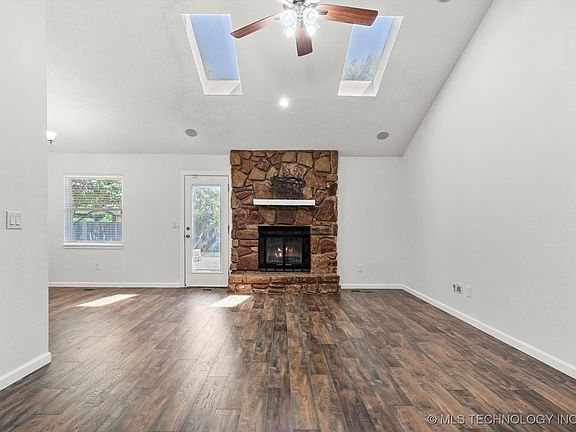 This home will check all your boxes! Affordably priced, well maintained, move in ready, 3 bedroom, 2 bath family home with the perfect location and in the Jenks school system. Vaulted combo living room with a cozy wood burning fireplace. Kitchen with a pantry and breakfast nook. This home has new exterior and interior paint and new luxury plank vinyl flooring throughout. Conveniently located close to Tulsa Hills and Page Belcher golf course. Easy access to highway 75 and a quick commute to downtown. This one won't last long, book your showing today!