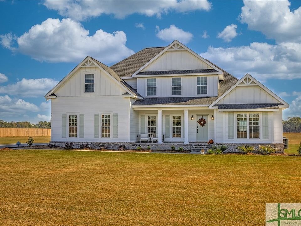 If you're looking for a new build that's already had all the upgrades & is ready NOW, look no further! This home boasts gorgeous modern farmhouse details on a sprawling 5-acres. When you step into the foyer you will immediately notice white shiplap details. The open family room features gas fireplace & vaulted ceiling. Step through to the kitchen w/ stainless steel appliances, granite counter tops, ample cabinet space, & an island waiting for many conversations to be had around it. In addition to the formal dining room, off the kitchen is a breakfast nook w/ lots of natural light coming in through tall windows. In the master are his & hers walk-in closets & a bathroom w/ his & hers vanities, garden tub & tiled shower. On the other side of the house are the laundry room, guest room, & full bath. Upstairs you'll discover two large bedrooms, a bonus room & full bath. The two downstairs BR upgraded to LVP. Bamboo shades, undergrnd fence incl. Offering $7500 towards CC w/ full price offer.