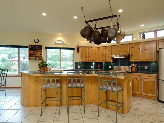Incredible value for the area! Beautiful home on .63 acres (2 lots!) Fabulous views! Huge windows! Peeled log accents! Large kitchen! Gorgeous courtyard! Finished basement w/rec room, 2 beds joined by a full bath! Ample storage! Large deck! Newer furnace!Black top road to concrete driveway pad is maintained/snow plowed by the HOA (the black top is part of Big Horn Trail).