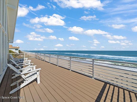The ocean views from this stunning three story direct oceanfront home will impress! This house boasts 6 bedrooms/3.5 baths and new roof in 2021. It has two kitchens, a lofted office and options to lock off different suites to accommodate multi generational living and guests that visit.. There is a wall of floor to vaulted ceiling windows in the great room over the ocean that brings the ocean front and center and floods the space with natural light. It is such a bonus to have two kitchens and a layout like this that has one suite downstairs and another on the second and third level. A deep, wrap around balcony provides a perfect spot to relax and enjoy the scenery. The property offers direct access to quiet beaches, perfect for leisurely strolls and water activities. This home is ideal for a peaceful retreat on the coast. Long driveway and turn around make for easy access to A1A. Bike path across street from home goes on for miles and miles. Super quiet location in Melbourne Beach.