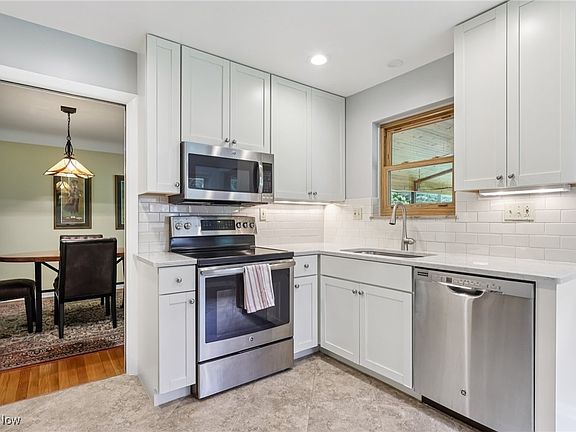 Don't miss out on this fabulous opportunity to be the next stewards of this meticulously maintained, thoughtfully updated, solid brick, raised-ranch home in the Solon School System! Nestled on close to 1 acre, the peaceful & serene setting will not disappoint its new owners. It offers all of the convenience of city living w/many amenities close by such as restaurants, shopping, grocery stores & freeway access all just minutes away. The deep setback & fabulous landscaping of this house makes it feel like your in the country. Enjoy 3 nice size bedrooms (all on the first floor), 2 full baths, 2 cozy living areas with picturesque windows, & 2 fireplaces to cuddle up by during those cold winter nights. The updated, bright & refreshing kitchen is plenty of room to cook those gourmet meals for friends & family with an adjoining, quaint dining area. But don't stop there! Keep going thru the doors that lead to a FABULOUS, covered 3 season room with cathedral, wood ceilings and views for what seems for miles! This is a fabulous entertaining space and great for hosting large, weekend gatherings. Don't overlook the ample and thoughtful storage space throughout the entire home! The finished basement makes another great space to relax & watch tv or play card games w/the people that matter most. Enjoy a small workshop w/nature stone floors that span thru the laundry room & out to the 2 car garage. The entire home is surrounded by nothing but nature to enjoy or entertain guests on the weekends, surrounded by beautiful landscaping offering a large variety of different plants & perennials that bloom stunning flowers & an array of colors all throughout the year. Enjoy the large, open backyard, side patio & small fire pit. Updates include new April Air added to heating system (2025), H20 tank (2020), remodeled up & downstairs levels 2021-2023, newer carpet, auto-blind in LR, whole house waterproofed 2006 w/transferrable warranty, covered porch, side patio and landscaping since owned.