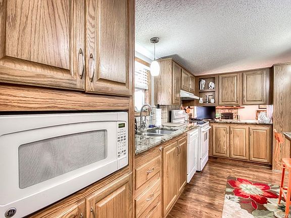 Spacious, updated, well kept manufactured home on 1/2 acre corner lot. Granite counter tops, covered back porch deck, walk-in pantry, covered parking, electric gate and garage access make this home one-of-a-kind. Attached workshop with two storage units, and two automatic gate entrances is perfect for parking, storage, or any type of hobby area. Home also features additional storage building and a NEW ROOF (April 2017). Come see today!