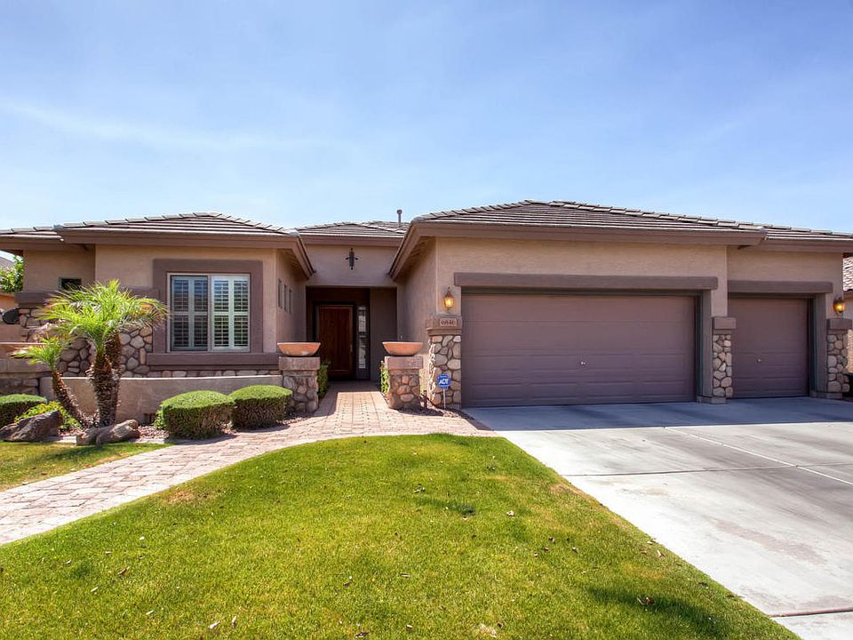 Back on Market! Buyer walked. Beautiful upgraded home in highly desirable Seville. Loaded with upgrades which include Maple Cabinets with Antique Nickel Hardware, Granite Counters, Shutters throughout and French Doors. Over $33K in flooring alone. Master offers separate tub/shower,dual sinks and private exit to back yard. Jack and Jill secondary bedrooms and a double door office with wood flooring and custom built-ins (can easily be used as 4th bedroom). Energy efficient home located on premium lot. Resort like backyard w/ Pavers, Built-in BBQ, Firepit, Covered Patio, Grass and manicured Landscaping. 3 car garage with epoxy floors w/ built-in cabinets. Optional Golf or Health Club Memberships available. This home is a must see with schools that are in A rated Chandler School Distri