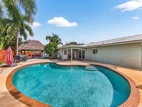Welcome to your dream home in Palm Aire Village! This beautifully updated 4 bedroom, 2 bath plus office home sits on a huge corner lot and has a bright, open feel with a spacious family room and stylish porcelain tile floors throughout. The kitchen is a total dream with sleek granite countertops, stainless steel appliances, and tons of cabinet space. Step outside to your own backyard paradise, complete with a tiki hut, a great patio, and a saltwater pool, so relaxing and fun! Plus, this home boasts a metal roof, hurricane impact windows & doors and a whole-house generator. You'll love this family-friendly neighborhood, no HOA and central to everything, with easy access to I-95 and the Turnpike. Don't miss this move-in ready gem, it's sure to go fast!