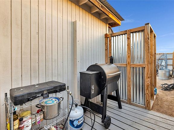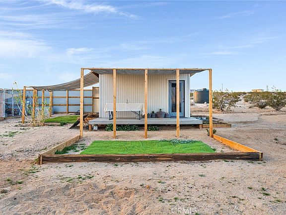 Check out this Rare Desert Opportunity with Utilities in Place! Now is your chance to own a slice of high desert paradise with this unique property offering breathtaking panoramic views that showcase the natural beauty of the Mojave Desert landscape. Key Features: The property currently has a 192 sq ft structure on-site with a sleeping area, a refrigerator, and other personal items. The bonus is the additional electrical and water access already at the property lines. The current owner has begun construction on an outdoor shower for desert living convenience and has installed established gardening areas perfect for sustainable living. The property has a secure dog kennel area for your furry companions to remain safe or this area could also be used as exterior, lockable storage. This hidden gem provides an excellent foundation for those seeking a desert retreat or looking to develop their dream getaway. The hard-to-find combination of electric and water access makes this a standout opportunity, saving you significant time and investment compared to other properties. This property currently has running water through an installed water storage tank, but another attribute that comes with the property is the installed water meter along the properties southern boundary line. The structure, however, is not currently connected to the water meter, but having access to the water grid is still a very valuable asset to have in the area.