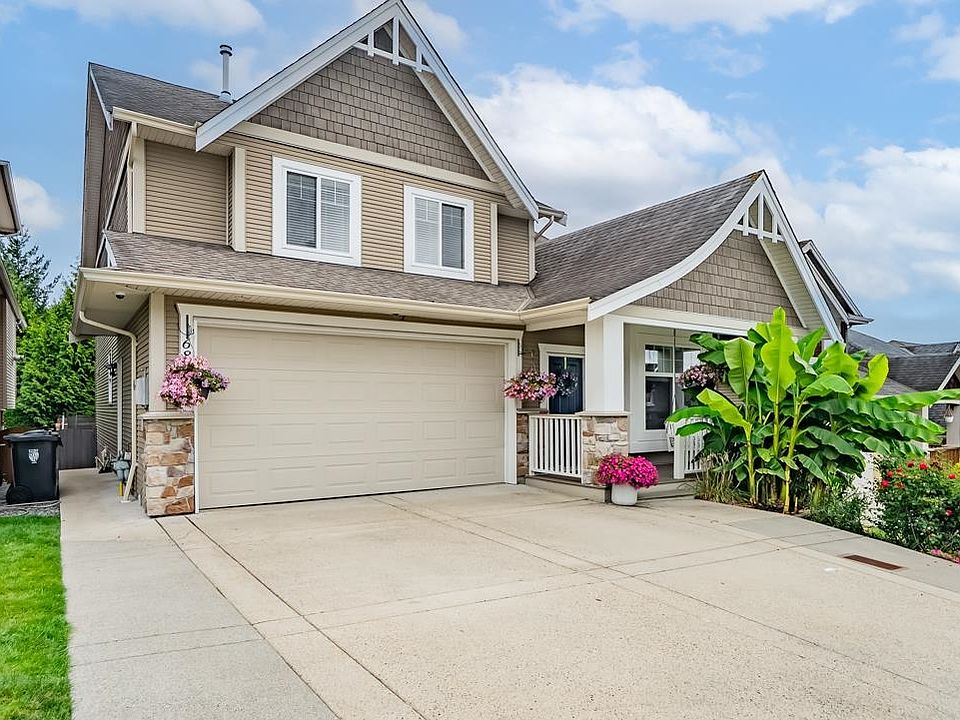 Welcome to Routley Wynd & this beautiful 2 storey w/basement home. Offering over 3200 s/f of living space the main floor Great room boasts soaring 18' ceilings with loads of windows to allow maximum natural light. Grand kitchen features timeless white cabinetry, Quartz counters & S/S appliances. Walk out to your covered Balcony & sit by the gas powered fireplace while taking in the Valley views! Fully fenced backyard offers irrigation ,a fair sized storage shed & backs onto a GREENBELT for the ultimate privacy! Upstairs offer 3 generously sized rooms including a Large Primary that has stunning views of the Valley & Mount Baker. 5 piece ensuite bathroom. Downstairs offers a 1 or 2 bedroom mortgage helper. Bonus A/C & 200 amp service. Near to shopping, restaurants, parks, schools & transit.