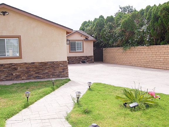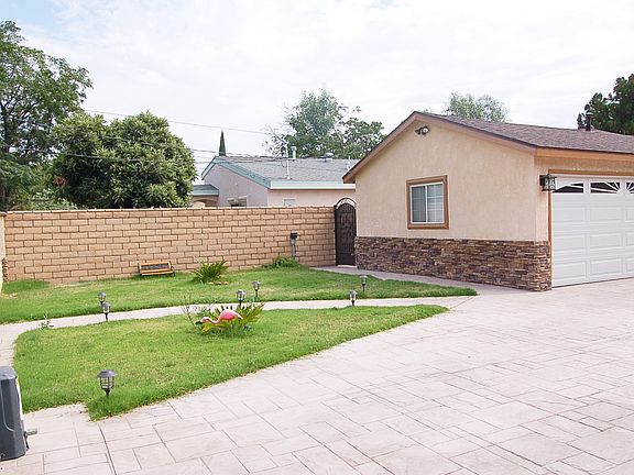 A complete rehab 2 years in the making! This one is a must see that will not last and offers the following newly installed: Wrought iron gate with electric opener, side and rear block walls, stamped concrete in the front and rear yards, exterior stucco and stone accents, roof, windows, security cameras and much more! Interior boasts the following newer additions: Spanish style custom paint throughout, wood shutters, hardwood and tile floors, recessed lighting and living room with French doors which leads to the entertainers yard equip with built-in gas BBQ island with sink, hardscape (stamped concrete), a spacious grassy area and best of all a custom “sand pit” play area for children of all ages! All 3 bedrooms are spacious and come with ceiling fans. Full bathroom offers his/her sinks, spa tub and separate stall shower and both bathrooms offer granite countertops and tasteful tile work throughout. Kitchen offers an eat-in area along with granite counters, tile floors, stainless steel sink and plenty of counter/cabinet space. Crown and base molding, mirrored closets are additional pluses yet there is so much more this beautiful property has to offer! 2 car attached garage with direct access and opener, laundry hook-ups, new slab and finished walls which makes this another possible room for entertaining! Hurry while it lasts!