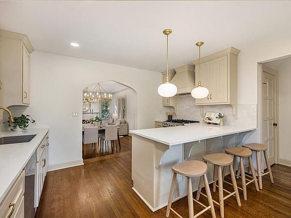 Welcome to 6848 Edgevale Road – a jewel of a home where historic charm meets modern comfort in the heart of Armour Hills. This home has 4 bedrooms, 3 full bathrooms, PLUS an additional dedicated office room with historic bay windows and built-in cabinets! The charm of the historic Dutch Colonial architecture rings true from the front, and custom craftsmanship and modern amenities wait inside. The classic entryway greets you, with the dedicated office area just inside. Step into a light-filled living room featuring a cozy fireplace and original crown molding. The living room features a dining area nestled between living, kitchen and outdoor spaces, making it the heart of the home. Step right out into the screened porch, accessed from the living room so it feels like an extension of your indoor space! You’ll find an all-new custom kitchen from Miller’s Custom Cabinets, complete with an oversized eat-in island, professional-grade gas range, and quartz countertops. A spacious walk-in pantry adds both function and style. Also on the main floor is a versatile bedroom, along with a stylishly appointed full bath. Upstairs, you’ll find three additional bedrooms, one of which is a luxurious primary suite featuring an ensuite bathroom with dual vanity, carrara marble XL shower, and a walk-in closet. The third full bath has ample room, marble floors, and a custom laundry area with washer/dryer hookups, built-in cabinets and countertop – second-story laundry! The full basement is newly painted and ready for storage. Outside, enjoy the new concrete patio, perfect for grilling and entertaining, overlooking a private backyard. A detached 2-car garage with electric service completes the package. This home has been extensively updated, providing peace of mind and modern functionality. Located on a quiet, tree-lined street just blocks from Brookside Shops and steps from walking paths, this thoughtfully updated home blends timeless elegance with modern living. Agent related to Seller.