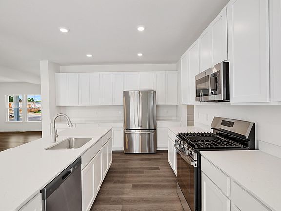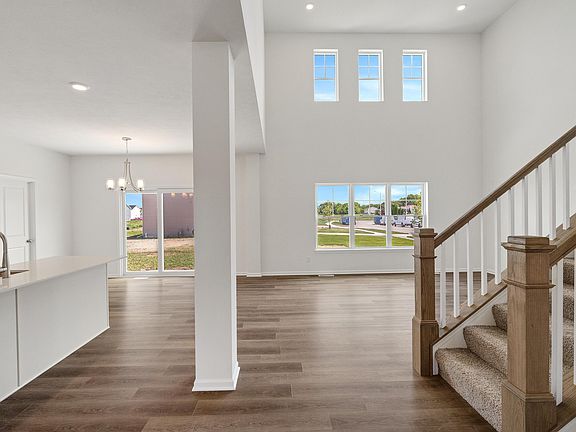 The Sedona! An open concept floor plan with 4 bedrooms, 2.5 baths and a main floor flex room that can be used as an office or den. The Kitchen showcases white cabinets, quartz countertops, stainless steel appliances, large island for entertaining and plenty of storage in the walk in pantry. The Great room has 20-ft ceiling with a beautiful oak railing staircase. The Owner's Suite has a tile shower, double bowl vanity and spacious walk in closet. Patio. Full unfinished basement with rough in plumbing. Front yard landscaping. All with the Industries Best Customer Care Program and Warranty.