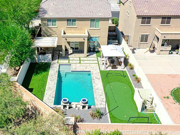 Beautifully remodeled home from inside and out! Brand new kitchen, sparkling pool with waterfall feature, and full on backyard oasis. Fresh artificial grass with a putting area, modern travertine pavers, built in bbq area, and new RV gate for extra parking to top it off. Brand new water softener system as well, which all has been done within the last year! Open concept living space with tons of natural lighting and upgraded features throughout. Experience a clean and comfortable home nestled in a cozy community and incredible location! 10 Minutes from Westgate Entertainment District, Cardinals Stadium, and Top Golf.