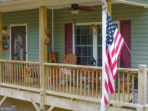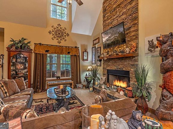 Welcome to your private, 5 acre retreat in the north Georgia mountain. Surrounded by woods, nature and the sound of the small creek, the home provides ample opportunity to entertain or just enjoy the well thought landscaping and the beautiful natural setting. When you arrive at the hand carved front screen door, you get the idea that this home is special. Inside, this immaculately kept home, there is the 2 story great room, dining area and kitchen, half bath and the primary suite, complete with a soaking tub. The stairs lead up to the loft, 2nd bedroom and another full bath. The door leading out from the dining area takes you to a walkway leading to where you'll probably want to spend most of your time - the large covered deck, complete with wood burning fireplace, living area, a bar and a grilling deck. There are tons of unique decorative touches as well as extra features (such as a whole house water filtration system, added throughout the property, making this home truly one of a kind. The home also has a front porch which leads down the lit steps to a gazebo. The property also features a large, fully powered outbuilding and a metal carport to park your large RV. This home has so much privacy and with 5 acres, you have plenty of room to roam.