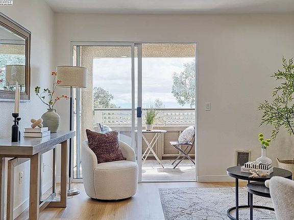 Spectacular Views of the bay on the Hayward Hills! Enjoy magnificent, year-round sweeping views from your private balcony and bedroom in this newly and elegantly remodeled top-floor condo. Nestled in the serene Hayward Hills, just below Garin Regional Park, this home offers modern upgrades and a tranquil lifestyle. Step inside to a brand-new kitchen featuring quartz countertops with a stylish backsplash, stainless-steel sink, and sleek appliances. The spacious bathroom boasts an oversized vanity with quartz counter and new shower doors. Additional highlights include a walk-in closet, recessed lighting, chic light fixtures, luxury laminate flooring, fresh interior paint, new baseboards, and in-unit laundry. Relax on your private covered patio or take advantage of community amenities including a pool, spa, gym, and clubhouse. Outdoor enthusiasts will love the nearby parks with tennis courts and scenic walking trails. Perfectly located just minutes from shops, dining, public transportation, and Cal State East Bay, with easy access to I-580, I-880, the San Mateo Bridge, and BART. No rental restrictions! This stunning home combines comfort, style, and convenience - and it won’t last long! 360VT: https://tinyurl.com/yc4udam6